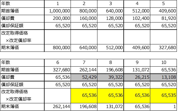 ※ 6年目以降より定率法から定額法で均等償却を行う。(2012年度法改正)