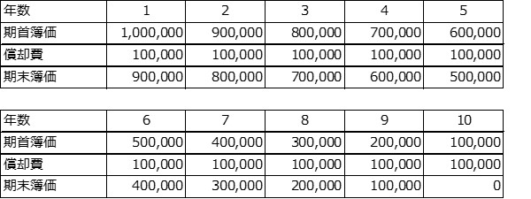 2007年04月01日に取得、取得価額1,000,000円、耐用年数10年(定額法の償却率 0.100)