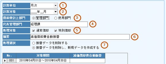 「振替データを削除し、新規データを作成する」にチェックを付けた場合、処理条件に一致する減価