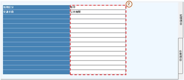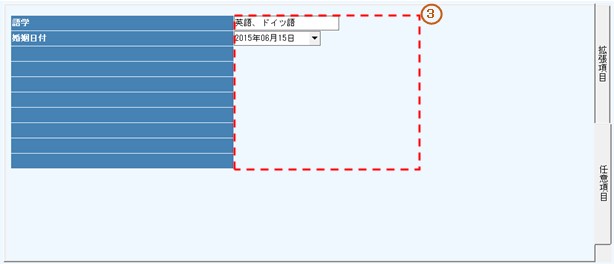 任意項目には、〔システム設定〕〔人事情報登録〕の任意項目で設定した項目が入力できます。