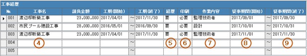 工事経歴に該当しない情報の場合、「不要」を選択します。