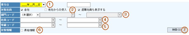①[ヘッダ]を入力し、登録する社員及び昇格情報を検索します。