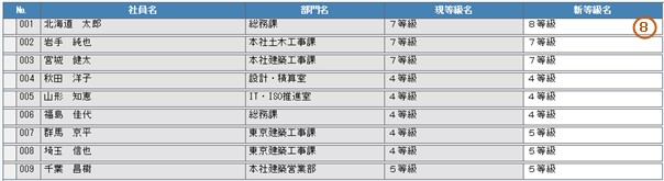 未選択の場合、上記条件に該当する社員の全ての昇格情報が表示されます。