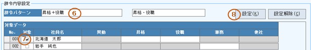 8.設定ボタンをクリックし、社員の異動情報に辞令パターンを関連付けします。