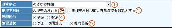 3.処理年月日以前に変更された異動履歴も更新の対象とする場合、チェックします。