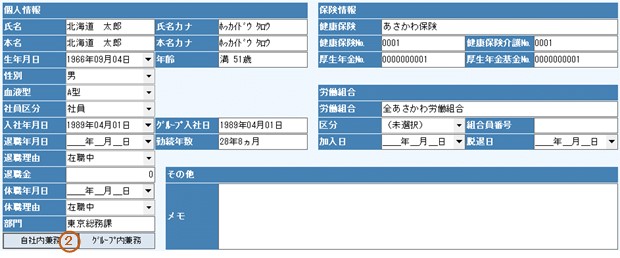 ②自社内兼務ボタンをクリックし、兼務情報画面を起動します。