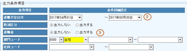 3.過去の退職者を検索する場合、「出力する」を選択します。