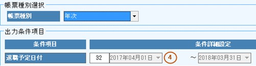 年度(会計期)で定年退職となる社員を出力する場合、選択します。