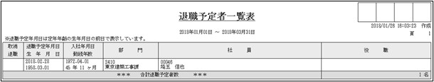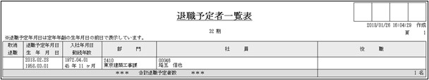 〔退職予定者一覧表〕を出力し、定年退職予定者を確認します。