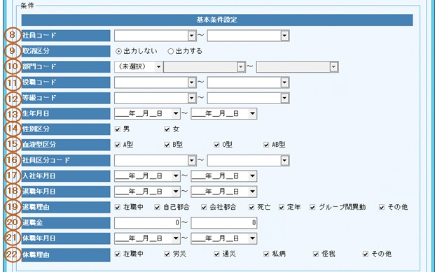 16.社員区分コードの出力条件を入力します。