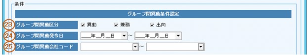 24.グループ間異動発令日の出力条件を入力します。