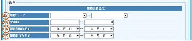 34.研修期間の開始の出力条件を入力します。