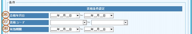 36.合格年月日(取得年月日)の出力条件を入力します。