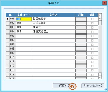 4.登録する条件コードを入力します。必須項目です。