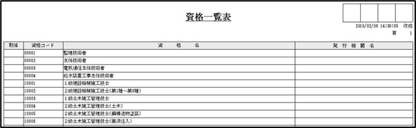 システムメニューより〔人事情報〕の人事情報グループの〔資格一覧表〕を起動します。