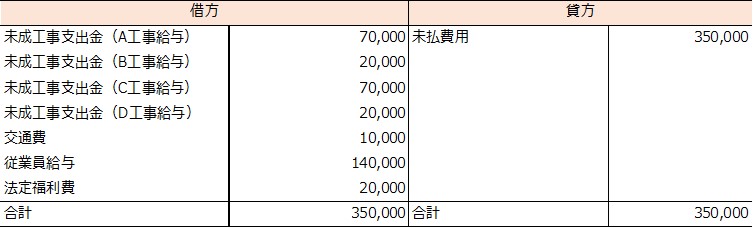 工事分社員給与の科目・費目:未成工事支出金・従業員給与