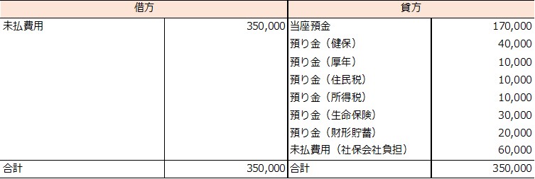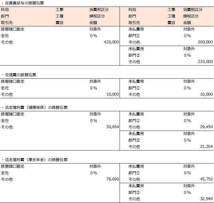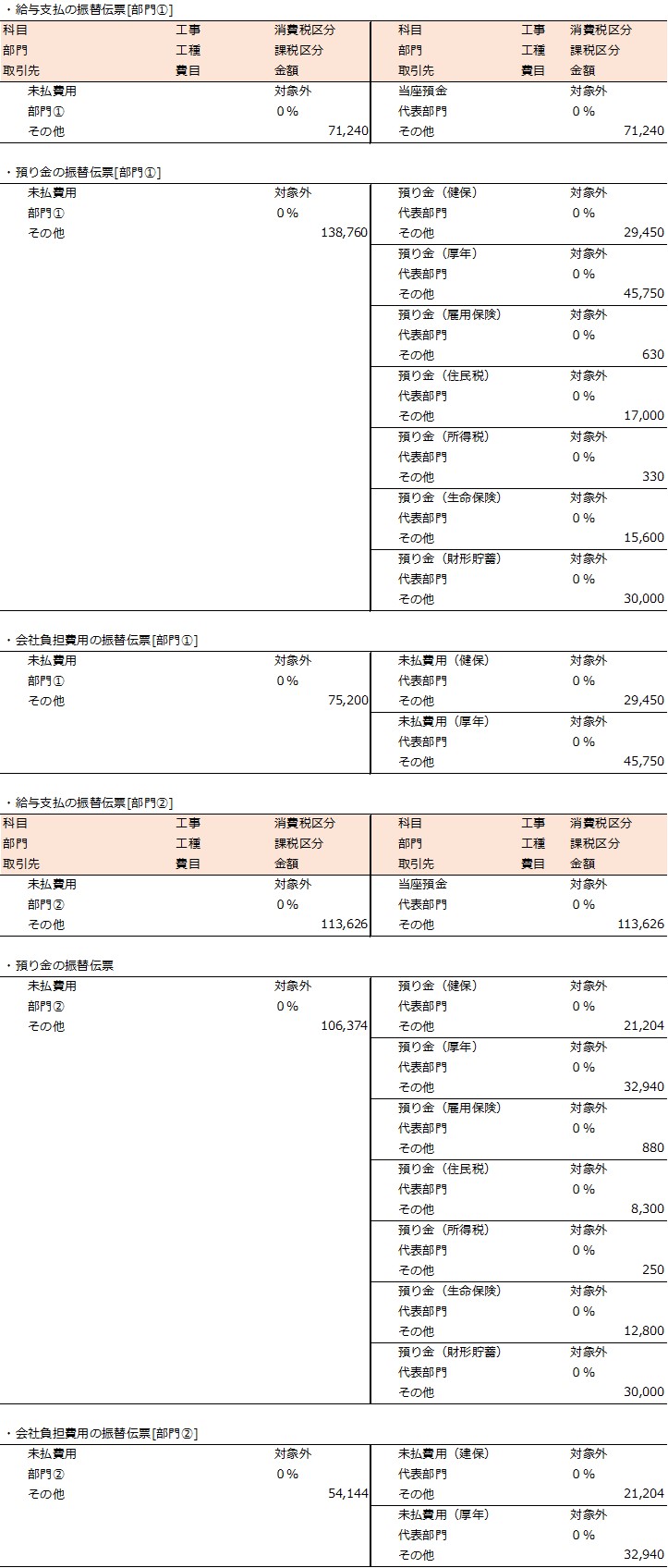 勤怠締日の仕訳、支払日の仕訳で分かれて作成されます。