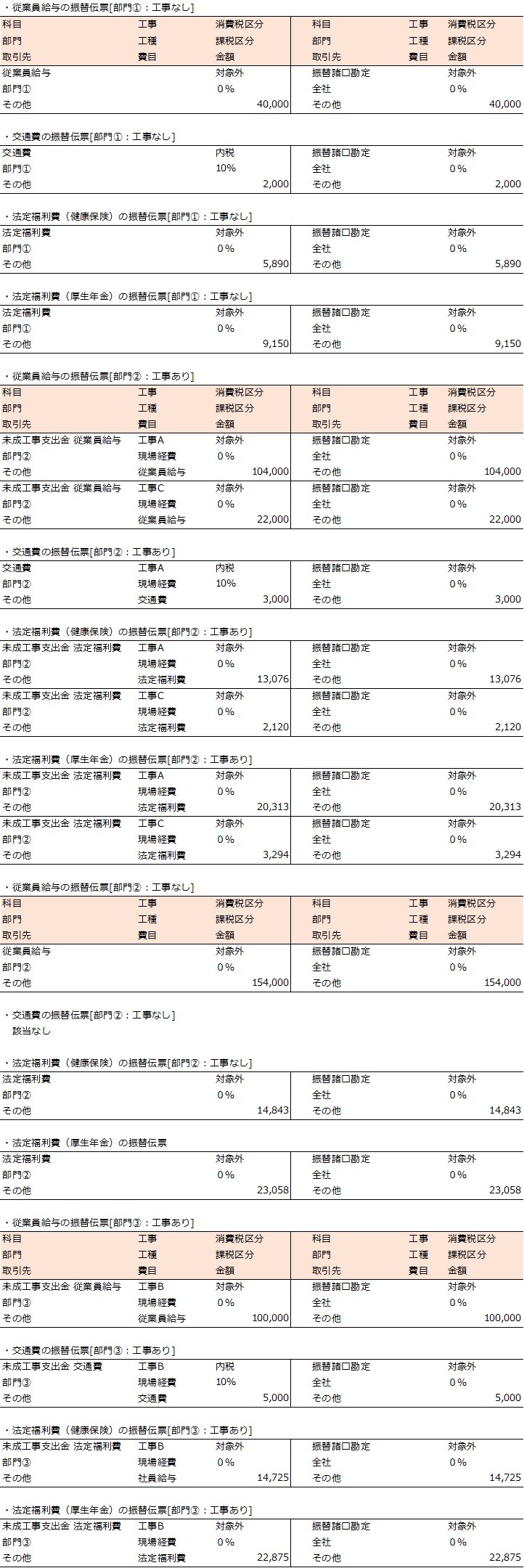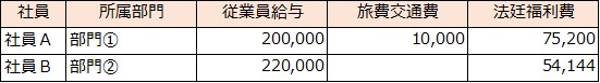 2.給与情報(支給額、交通費、法定福利費)を所属部門毎に集計し振り替えます。
