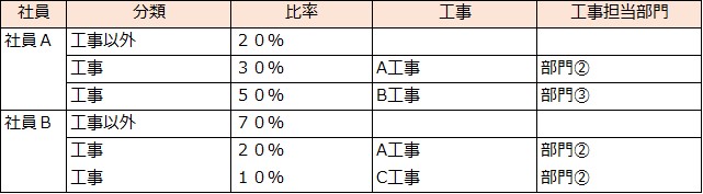 1.【工事原価振替情報】の比率で給与情報(支給額、交通費、法定福利費)を按分し、