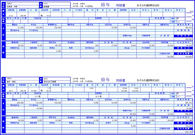 給与明細順(所属部門順給与資格順給与体系順社員コード順)に出力します。