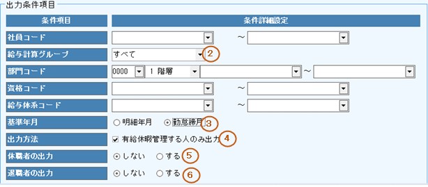 4.有給休暇管理する人のみを出力する場合は、選択します。