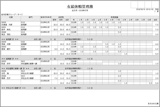 入力した出力月から過去1年の間に有給休暇を付与された社員が出力対象となります。