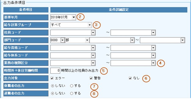 出力する場合、退職日が起算月から基準年月の間の社員が出力されます。