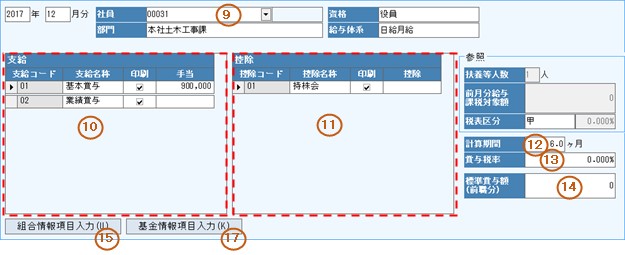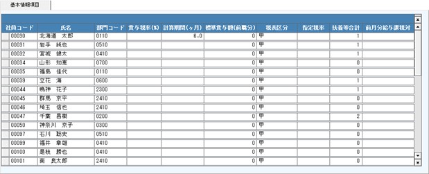 基本情報項目では、賞与税率や(査定)計算期間、標準賞与額(前職分)を入力します。