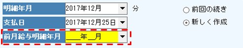 支払日の下に表示された前月給与明細年月に、所得税を計算するに利用する給与明細の明細年月を入力します。