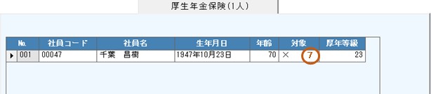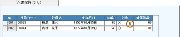 「×」は、満70歳に達し、介護保険が徴収されなくなる社員です。〔給与マスタ登録〕の介護保険番号と