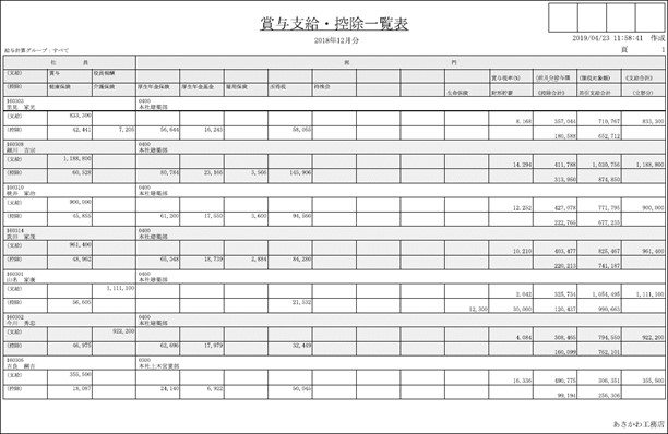 給与明細順(所属部門順給与資格順給与体系順社員コード順)に出力します。