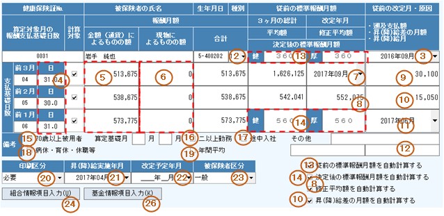 ・算定期間内に被保険者区分に変更があった場合、変更月と変更になった被保険者区分を入力します。