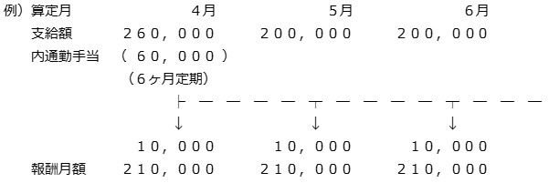 〔算定基礎届計算〕で作成された情報は、月割された通勤手当が加算されています。