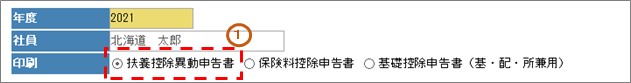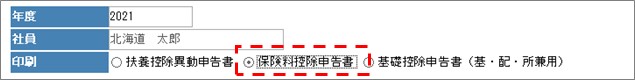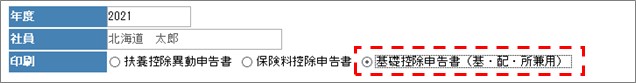 年末調整を行うため、扶養控除等(異動)申告書、保険料控除申告書、基礎控除申告書(基・配・所兼用)を印刷します。