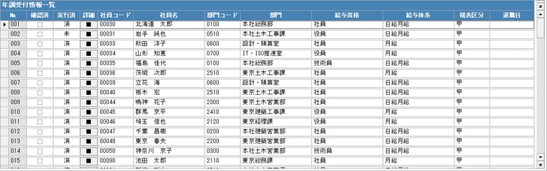 検索条件に該当する社員の年末調整申告書類の提出状況が表示されます。