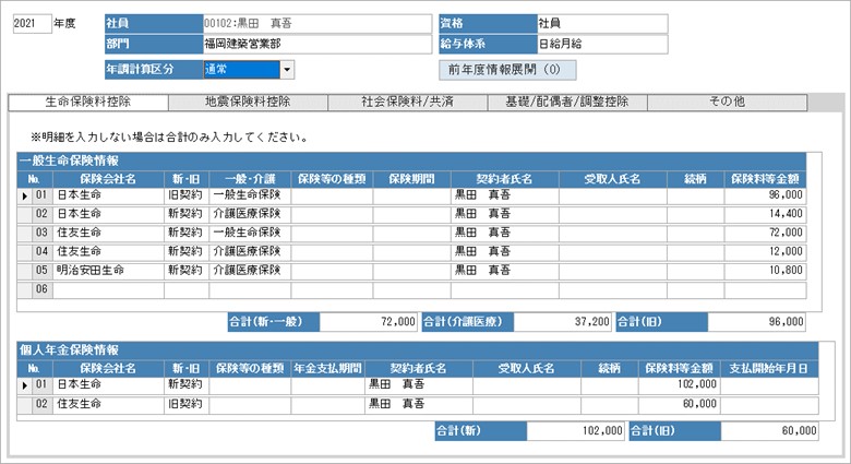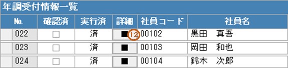 12詳細ボタンをクリックすると、クリックした行の年末調整情報の詳細が表示されます。
