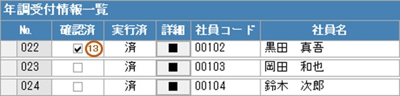 確認済として保存された年末調整情報については、〔年調受付係〕から年末調整情報の編集が出来なくなります。