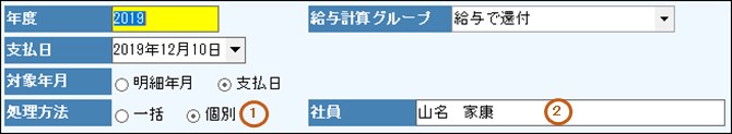1.「個別」を選択します。 選択後、社員コードの入力欄が表示されます。