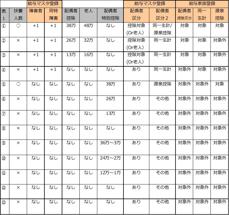 配偶者区分2・・・「同一生計/源泉控除」(①)