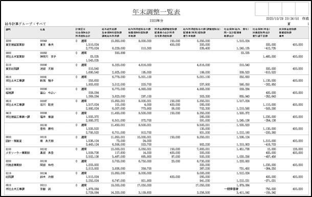〔年末調整一覧表〕を出力し、年末調整の計算結果を確認します。