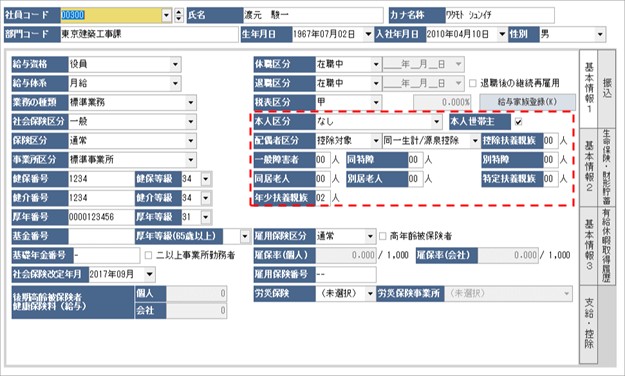1.扶養親族情報の年齢を判断する基準年月日を入力します。必須項目です。