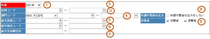 〔源泉徴収票〕〔源泉徴収票(専用紙)〕の絞り込みに使用します。