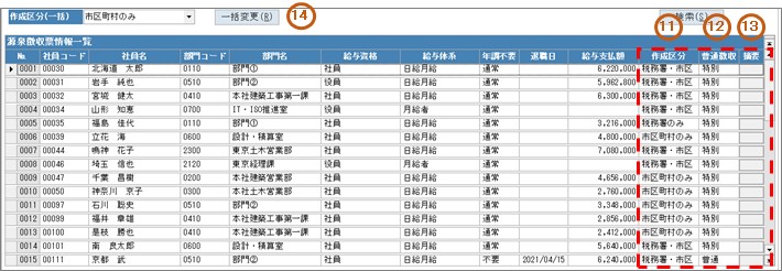 14.表示している「作成区分」を一括で変更する場合に選択します。