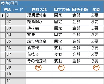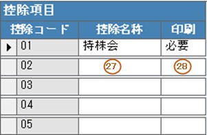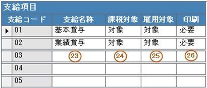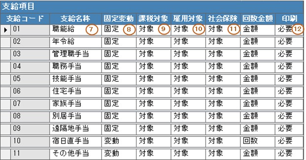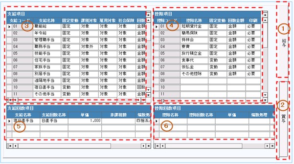 1.給与明細の支給項目、控除項目、支給回数項目、控除回数項目を登録します。