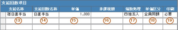支給回数項目は、単価を設定して、回数で入力して支給する項目です。