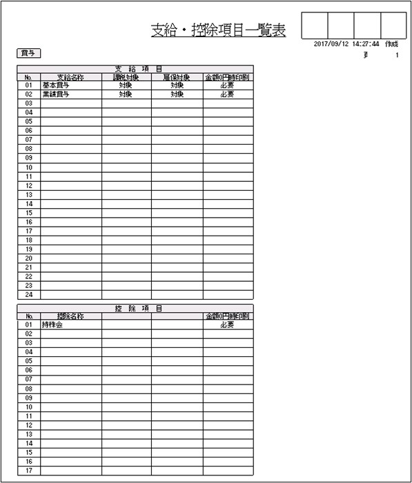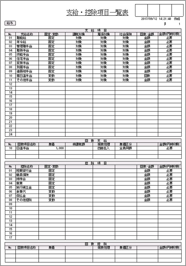 システムメニューより〔システム設定〕の給与初期設定グループの〔支給・控除項目一覧表〕を起動します。
