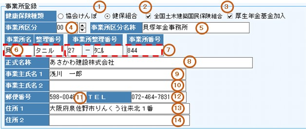 7.磁気媒体や電子申請で提出するデータに出力する事業所整理番号と事業所番号を入力します。