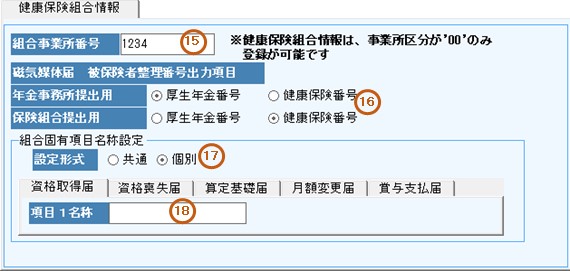 健康保険種類が"健保組合"を選択かつ事業所区分が「00」の標準設定の場合に入力できます。