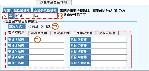 19.厚生年金基金番号と基金事業所番号を入力します。