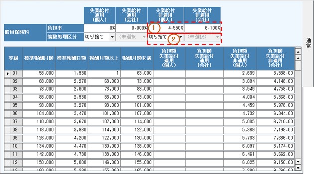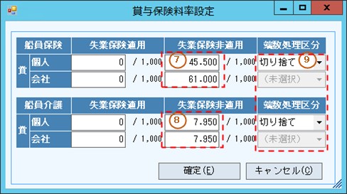 1.失業給付非適用に船員保険の料率を入力します。会社負担に船舶所有者負担を入力します。